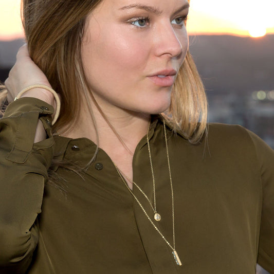 16" + 2” 14 Karat Gold Plated Sterling Silver "Mama Bear" Bar Necklace