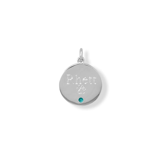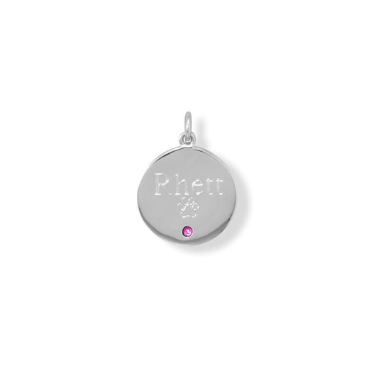 Engravable Rhodium Plated CZ Pendant - October Birthstone