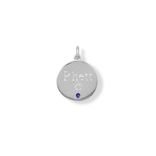 Engravable Rhodium Plated CZ Pendant - September Birthstone