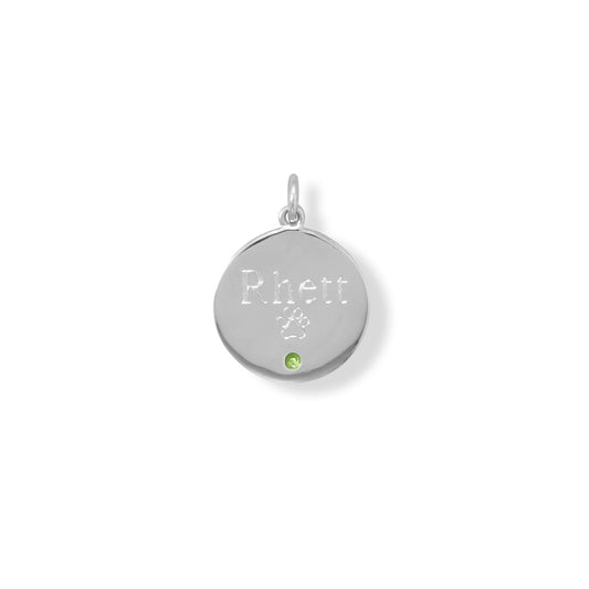 Engravable Rhodium Plated CZ Pendant - August Birthstone
