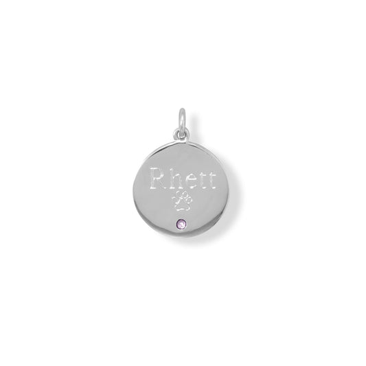 Engravable Rhodium Plated CZ Pendant - June Birthstone