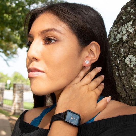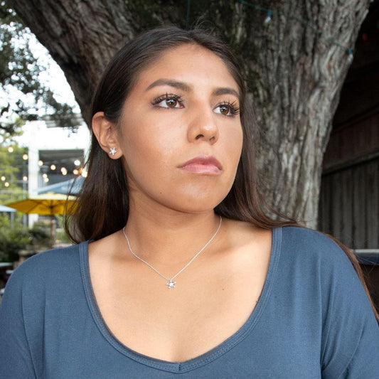 Rhodium Plated Tiny Snowflake CZ Stud Earrings