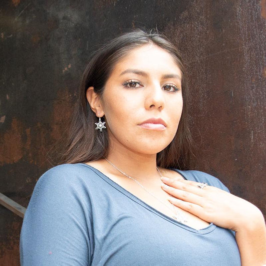 Polished Snowflake Stud Earrings with Crystal Center