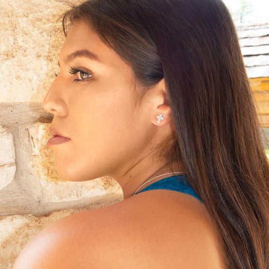 Small CZ Cross Stud Earrings