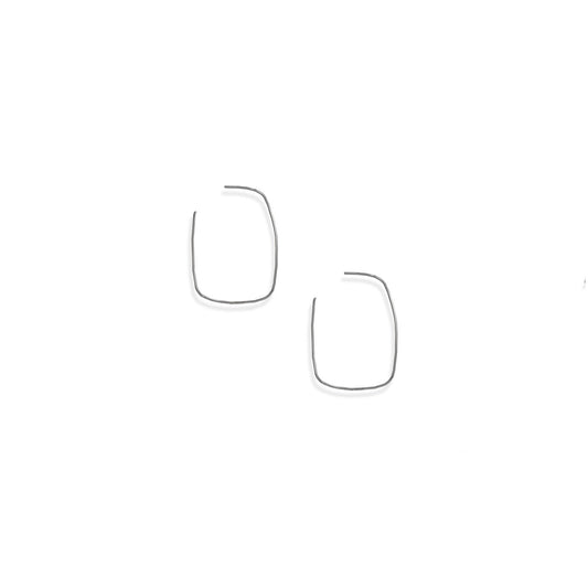 Rhodium Plated Thin Rectangle 3/4 Hoop Earrings