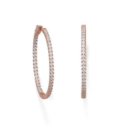 14 Karat Rose Gold Plated Round In/Out CZ Hoop Earrings