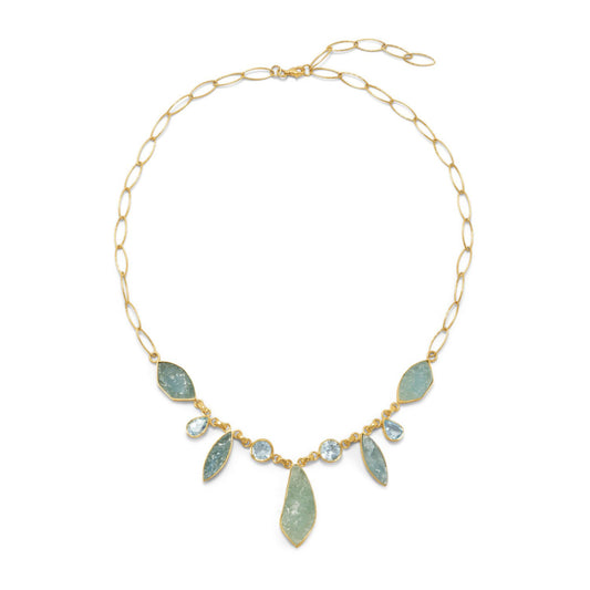 14 Karat Gold Plated Aquamarine and Blue Topaz Necklace