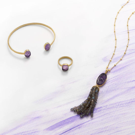 14 Karat Gold Plated Amethyst and Labradorite Tassel Necklace