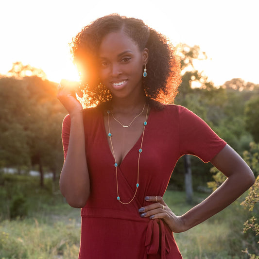 14 Karat Gold Plated Turquoise Stone Endless Necklace