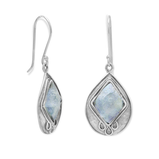 Oxidized Coil Design Ancient Roman Glass Earrings