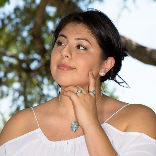 Ancient Roman Glass Marquise Necklace with Woven Wire Mesh