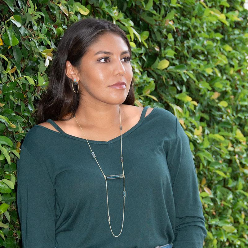 14 Karat Gold Plated Labradorite and Blue Topaz Chain Post Earrings