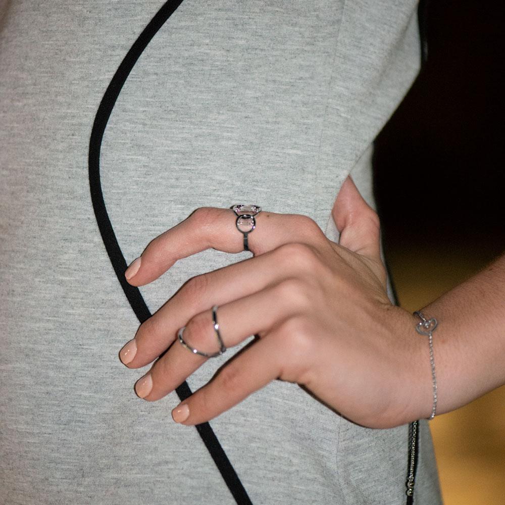 Rhodium Plated Triple Circle Suspension CZ Ring