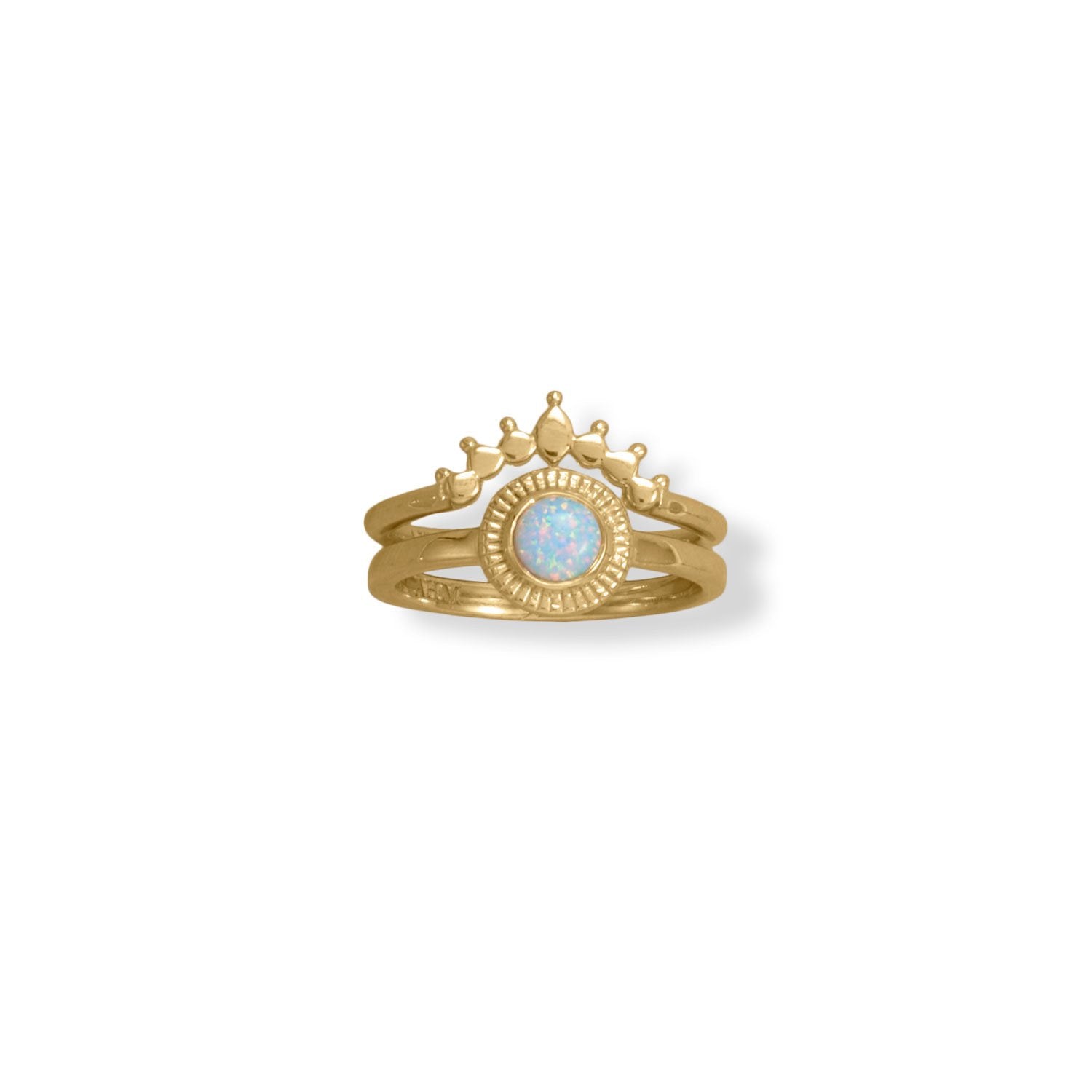 14 Karat Gold Plated Round Synthetic Opal Ring