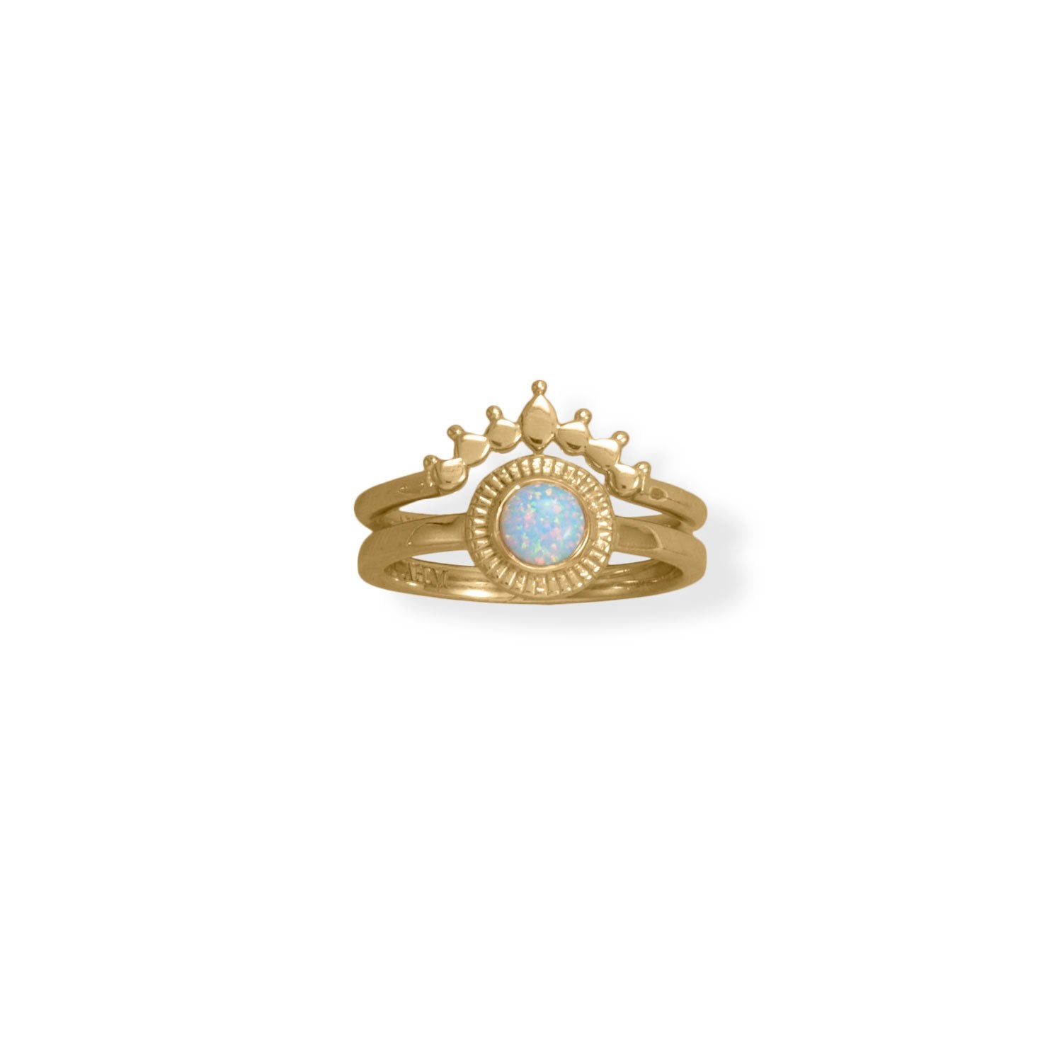 Jewelry fit for royalty! 14 karat gold plated sterling silver ring has a dot crown design. Crown is approximately 7mm x 13.5mm. Band measures 1.7mm wide and ring is available in whole sizes 5-9. .925 Sterling Silver Pro tip: Stack over assorted rings for a fun, customized look!