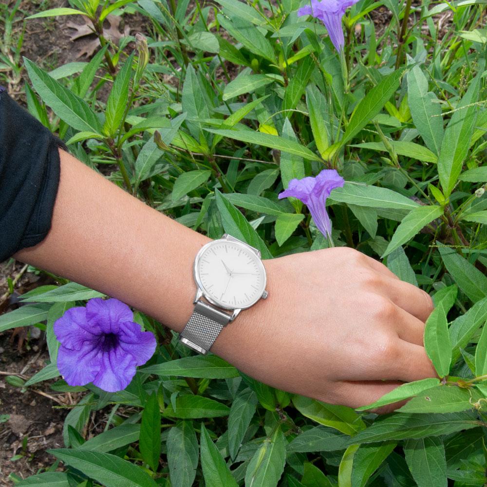 The perfect fit watch! Silver tone mesh band fashion watch with white dial. The magnet closure is very secure and allows you to fine tune the length for your exact fit. Watch band measures 16mm, round case measures 38mm with silver tone index. Adjustable up to 10". Fashion jewelry contains base metal.
